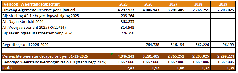 De verwachtte beschikbare weerstandscapaciteit bedraagt per ultimo 2026, in totaal €3.281.405.