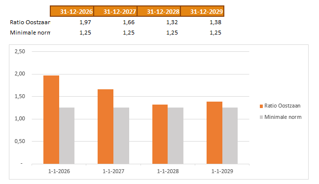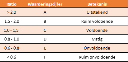 In het beleidskader is vastgelegd dat de ratio minimaal 1,0 moet bedragen (waarderingscijfer C zijnde voldoende) waarbij we ons richten op 1,25.