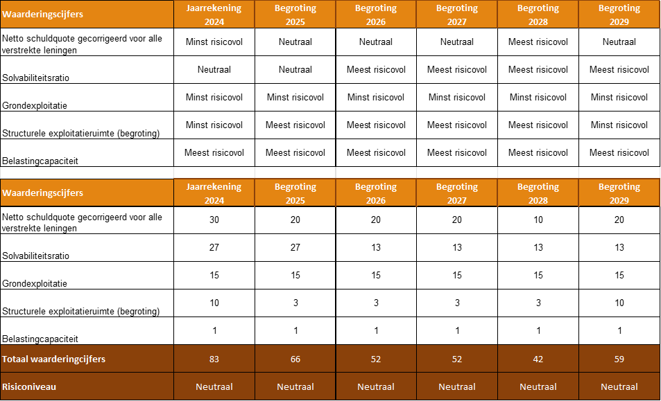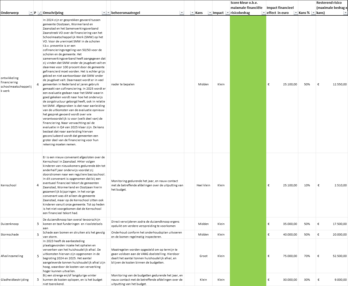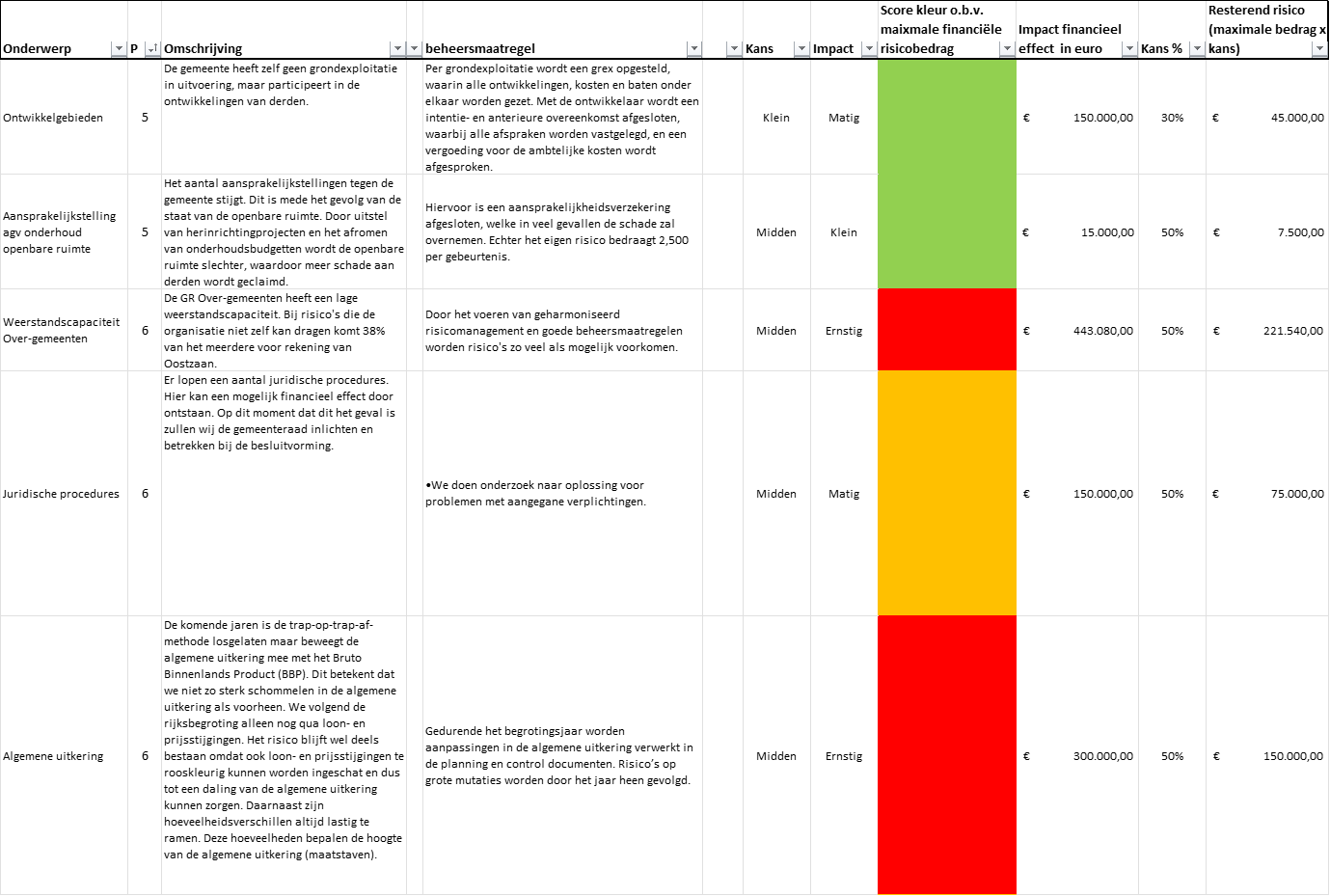 In de onderstaande tabellen zijn de risico’s van de gemeente Oostzaan weergegeven: