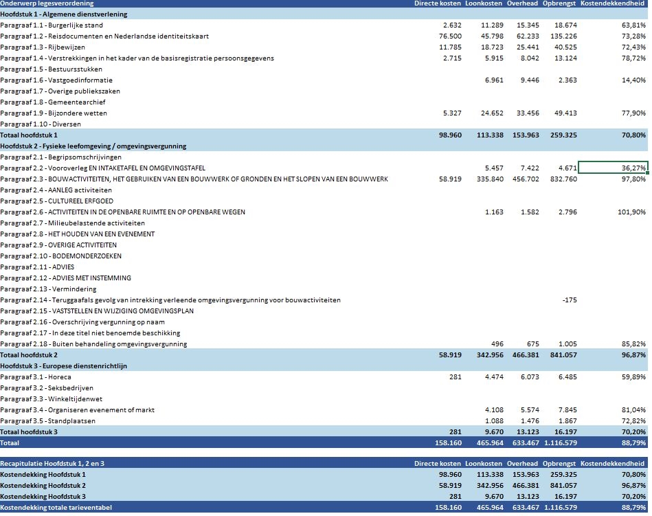 Hoofdstuk 3: dienstverlening vallend onder de Europese dienstenrichtlijn (horeca, prostitutiebedrijven, evenementenvergoeding en overige vergunningen. Een groot deel hier bestaat uit evenementenvergunningen. Vanwege de maatschappelijke betekenis is dit vaak niet kostendekkend).